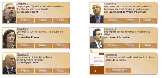 Le recyclage s'appuie sur un ouvrage : « Situations de fait ou de droit en droit fiscal belge de la famille » édité par la CUP dans le cadre de cette séance de recyclage. Le contenu de ce recyclage a été décomposé en chapitres qui ont été présentés et développés par différents orateurs. Chaque intervention est reproduite sous forme de vidéo et de textes.