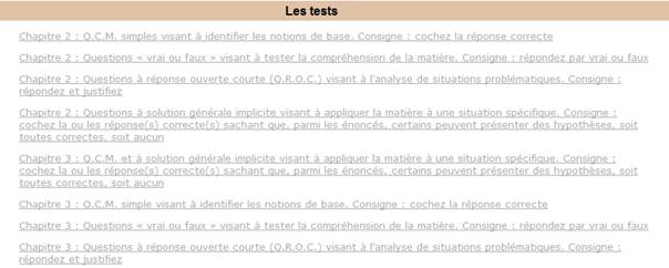 - Les QCM vrai/faux destinés à tester la compréhension de la matière présentée dans les vidéo.