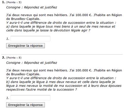 - Les QROC (réponse ouverte) proposant des situations complexes de droit fiscal sur lesquelles l'apprenant est interrogé. Ici, il doit répondre mais aussi justifier sa réponse.