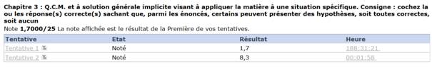 L'apprenant a la possibilité de consulter en un coup d'œil l'ensemble de ses tentatives soumissions. Il peut ainsi constaté sa progression.