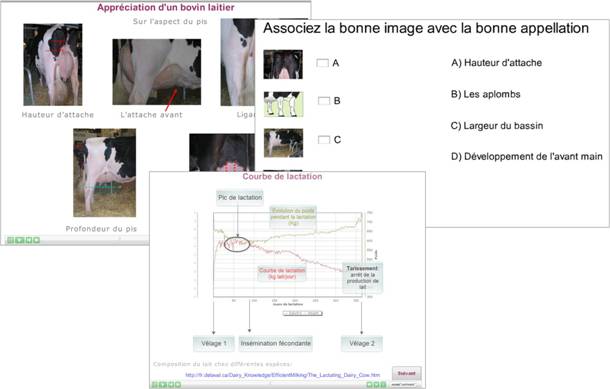 Le contenu des modules a été adapté à partir de Power Point animé et sonorisé, transformés en fichier flash grâce au logiciel Captivate (Adobe) ou iSpring Free.